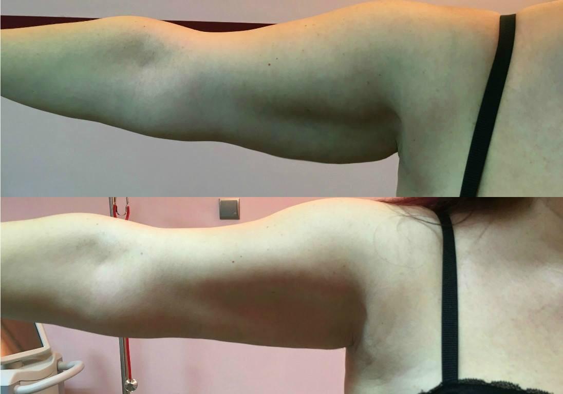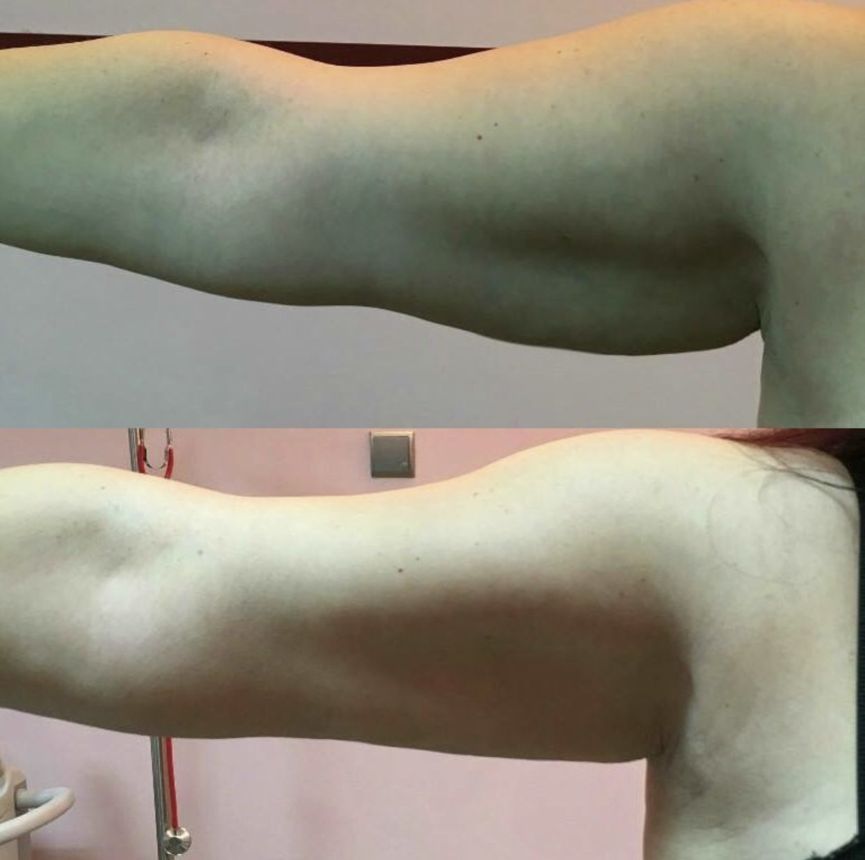 Excesul tegumentar mare și prezența pielii de calitate slabă sunt indicații pentru excizia acesteia pe lungimea întregului braț, prin practicarea unei incizii longitudinale din regiunea cotului până la axilă.