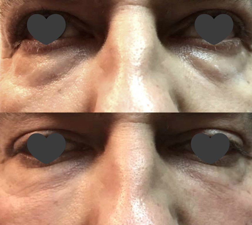 Toate aceste componente au efect sinergic, producând: remodelarea cearcănelor, fără a produce umflarea zonei, regenerarea și restructurarea pielii, protecția antioxidantă și hidratarea zonei din jurul ochilor. Mai exact, efectul este de redensificare a dermului! Injectat corect, produsul este eficient și cu un efect de lungă durată, care se injectează rapid, fără durere. Vi-l recomand!