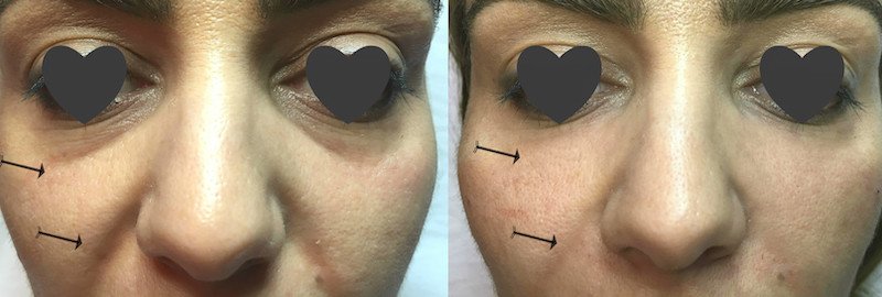 Injectarea este total nedureroasă și durează doar câteva minute. Gelul este așezat în mai multe direcții în zona șanțurilor pleoapei inferioare, dar și în alte riduri vizibile din jur, astfel încât să se integreze perfect în țesut. Efectul tratamentului de corecție a cearcănelor cu acid hialuronic și aminoacizi va fi vizibil imediat și se va observa atenuarea cearcănelor. Dupa câteva zile, pielea va deveni mai luminoasă, iar umbrele și neregularitățile de pe pleoapa inferioară vor fi atenuate.